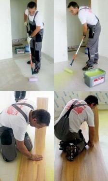Podklad pro nanášení lepidla SCHÖNOX iFLOOR musí být hladký a čistý. Ideálním podkladem pro nanesení lepidla je jemná nivelační stěrka SCHÖNOX na cementové nebo anhydridové bázi. Penetrace SCHÖNOX KH-FIX slouží pro zvýšení adheze lepidla. Lepidlo se nanáší speciálním válečkem, který snižuje spotřebu materiálu. Ihned po zaschnutí penetrace proveďte náčrty a obrazce pro založení podlahových dílců. Čáry jasně spatříte i po nanesení lepidla.